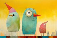 Kleurrijke vrolijke vogels. Deze "Happy birds" toveren gelijk een glimlach op je gezicht. Ze maken onderdeel uit van een serie, er zijn namelijk nog veel meer vrolijke en fantasierijke exemplaren. Wil je die zien? Typ dan hierboven in de zoekbalk: Kleurrijke vrolijke vogels.
