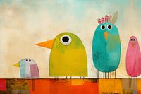 Kleurrijke vrolijke vogels. Deze "Happy birds" toveren gelijk een glimlach op je gezicht. Ze maken onderdeel uit van een serie, er zijn namelijk nog veel meer vrolijke en fantasierijke exemplaren. Wil je die zien? Typ dan hierboven in de zoekbalk: Kleurrijke vrolijke vogels.