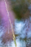 Deze waterjuffer hield mij goed in de gaten vanachter zijn grasspriet. De paarse gloed ontstaat doordat de waterjuffer door bloemen heen is gefotografeerd.