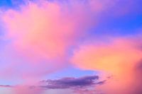 Kleurrijke wolken tijdens zonsondergang op een wintermiddag. Sommige wolken worden verlicht door de laatste zonnestralen.
