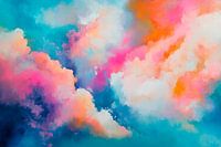 Een droom van wolken ontvouwt zich in zachte pastelkleuren en voert de kijker mee naar een wereld vol fantasie. De levendige accenten van roze en oranje breken het kalme blauw en geven de kamer een inspirerende energie. Ideaal voor de slaapkamer of woonkamer om een sfeer van rust en creativiteit te creëren.