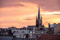 Dit is een stadzicht over Brussel, België. Op mooie zomeravonden kleurt de hemel soms tot een subtiel lichtspektakel. Om alles mooi scherp te krijgen maakte ik van een statief om alle trillingen uit de tele lens te halen.