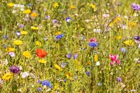 Kleurrijke zomerweide met veel verschillende en kleurrijke bloemen