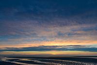 Kleurrijke zonsondergang op het strand van Schiermonnikoog in het Nederlandse waddengebied in het noorden van Nederland.
