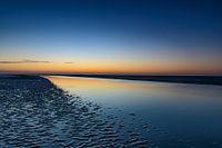 Kleurrijke zonsondergang op het strand van Schiermonnikoog in het Nederlandse waddengebied in het noorden van Nederland.