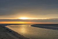 Kleurrijke zonsondergang op het strand van Schiermonnikoog in het Nederlandse waddengebied in het noorden van Nederland.