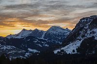 Kleurrijke zonsopgang op de Satteleggpas in de Alpen