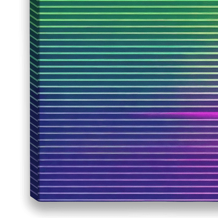 Kleurverloop - Dit abstracte schilderij toont een levendig kleurenverloop met horizontale strepen die van diepe magentatinten overgaan naar heldergele en groene tinten, waardoor een visueel indrukwekkende gradient effect ontstaat.