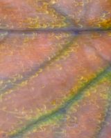 Suggestieve interpretatie van een herfstblad ontstaan door de camera langzaam te bewegen tijdens het maken van de foto, waardoor extra veel kleur wordt opgenomen. Het resultaat is een contrastvol beeld dat dynamiek uitstraalt. Details worden vervaagd terwijl opvallende sprankels van kleuren de aandacht trekken. Door het gebruik van verschillende kleuren die elk op zich toch redelijk sober gehouden worden, wordt een combinatie bekomen die past in elk interieur en tijdloos is. De frivole kleuren en de golvende elementen zorgen voor een vrolijk maar toch ontspannend gevoel, alsof je een herfstwandeling aan het maken bent in de vrije natuur. Het roept de herfstsfeer op, maar ook de lente en de zomer door de warme kleuren en in de winter zorgt het voor een tegengewicht in sombere tijden. De dynamiek illustreert dat je eigenlijk doorheen de seizoenen voortbeweegt.