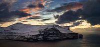 Panorama van de kliffen van Stakkur op het eiland Streymoy in het licht van de zonsondergang, Faeröerse eilanden