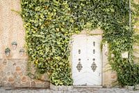 Koop de foto Klimop tegen muur met mooie oude deur van Evelien Oerlemans op canvas, aluminium dibond, (ingelijste) fotoprint, behang en ArtFrame, op maat geprint in Fine-Art kwaliteit.