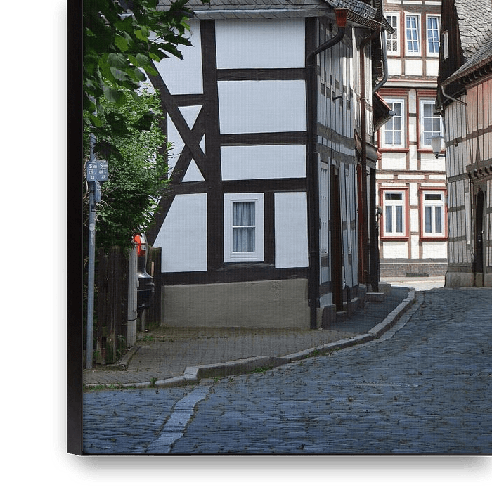 Smalle klinkerstraat in het centrum van vakwerkstad Goslar. Eén van de vele mooie vakwerk steden in de Duitse Harz
