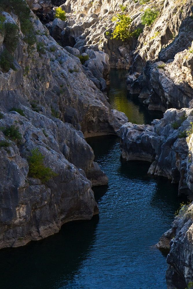 Kloof met brug bij het dorp Saint-Jean-de-Fos in Frankrijk