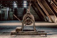 Tijdens een bezoek aan een leegstaand klooster trof ik op zolder dit takelwiel aan. Deze werd door de bewoners van het klooster gebruikt om meubels en andere zware objecten naar zolder te verplaatsen.