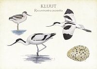 Het leven van een kluut op een oude schoolplaat. Illustraties Jasper de Ruiter.