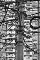 Koop de foto Kluwen van elektriciteitsdraden van Tony Vingerhoets als print op canvas, aluminium dibond, (ingelijste) fotoprint, behang en ArtFrame. Voor jou op maat geprint in Fine-Art kwaliteit.