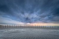 Zonsondergang met mooie pastels en een dreigende lucht.