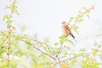 Deze kneu ging er even mooi voor zitten tussen het frisgroene voorjaarsblad.
