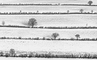 Kniklandschap in de winter ten zuiden van Kiel, Sleeswijk-Holstein, Duitsland. Zwart-witversie