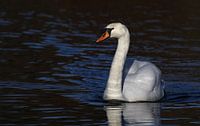 Een Knobbelzwaan die op zijn gemak mijn richting op komt zwemmen. Het licht op de foto vind ik persoonlijk erg mooi.