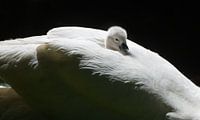 Knobbelzwanen zijn veel geziene vogels in Nederland. In de meeste sloten, plassen of vijvers zijn vaak wel een koppeltje zwanen te zien. In het voorjaar zijn ze extra alert omdat ze jongen hebben. De jongen zwemmen dichtbij de ouders of zitten op de rug van één van de ouders. Deze foto is gemaakt met een laag standpunt en flink onderbelicht. Hierdoor ontstaat een zwarte achtergrond en komen de zwanen er mooi in uit.