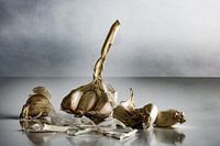 Een paar bollen knoflook. Een smakelijke toevoeging bij veel gerechten, en een verplicht item in de keuken. Netjes gedrapeerd ook nog zeer decoratief.