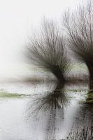 mist landschap in de winter. Overstromingsgebied en wat knotwilgen hierdoor krijg je een mooie weerspiegeling in het water. Door meervoudige belichting krijg je een knap abstract effect. Herfst.