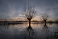 Knotwilgen spiegelend in water. Knotwilgen zijn kenmerkend voor het Hollandse polder- en