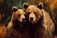 Een warme en expressieve weergave van twee beren, perfect voor een natuur- of dierenliefhebber. Dit kunstwerk combineert natuurlijke tinten met een levendige en artistieke stijl, waardoor het een krachtig en uniek middelpunt vormt in elk interieur. Geschikt voor woonkamers, kantoren of elke ruimte die een vleugje rustieke charme nodig heeft. De combinatie van dynamische penseelstreken en warme kleuren brengt het ontwerp tot leven.