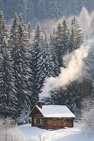 Knusse houten hut in sneeuw van Art & Soul Creations
