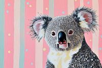 Details: koala, dierenportret, pastel achtergrond, gestreepte achtergrond, dieren schilderij, vrolijk kunstwerk, expressieve ogen, gedetailleerde vacht, koala portret, kinderkamer decor