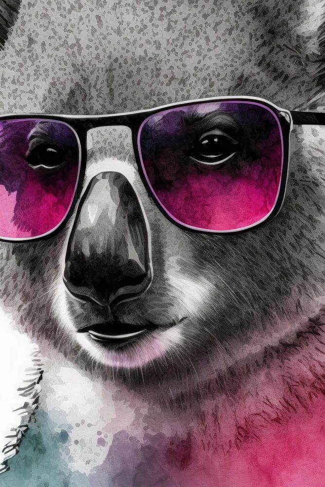 Deze poster bevat een gedetailleerde zwart-wit tekening van een koalabeer met een opvallende roze zonnebril. De afbeelding heeft een roze flair en bevat subtiele waterverfdruppels in roze en rode tinten. Helder, gedurfd en kleurrijk, deze kunstdruk brengt een funky splash van kleur in elke kamer. Het leuke dierenmotief in een cool bril/zonnebrilontwerp brengt zeker een glimlach op elk gezicht en fleurt een modern interieur op. Een perfecte blikvanger voor iedereen die van unieke en opvallende decoratie houdt.