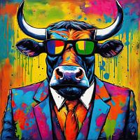 Koe Humor - een Humor Pop Art Schilderij als echte Blikvanger... Uit onze collectie 'Sharply Dressed Animals' met humor. Dit schilderij krijgt gegarandeerd aandacht...
