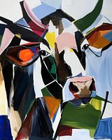 Kleurrijk abstract portret van een koe in Fauvisme stijl met fel contrasterende primaire kleuren tegen elkaar aan en grove penseelstreken.