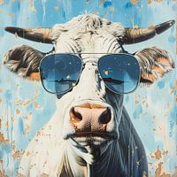 Details: koe, zonnebril, humor, blauw, wit, reflectie, dier, komisch, portret, vlekken