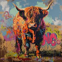 Koe Urban Art | Schotse Hooglander schilderij - Schotse Hooglander koeienschilderij schilderij koe Schotse Hooglander