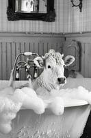 Koop dit koeien kunstwerk Koe in bad - een originele badkamerfoto voor je toilet van Poster Art Shop op canvas, aluminium dibond, (ingelijste) fotoprint, behang en ArtFrame, op maat geprint in Fine-Art kwaliteit.