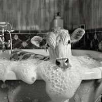 Koop dit koeien kunstwerk Koe in bad - een originele badkamerfoto voor je toilet van Poster Art Shop op canvas, aluminium dibond, (ingelijste) fotoprint, behang en ArtFrame, op maat geprint in Fine-Art kwaliteit.