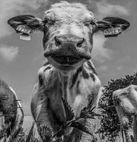 Portret van een koe in zwart-wit in Udenhout in Nederland.