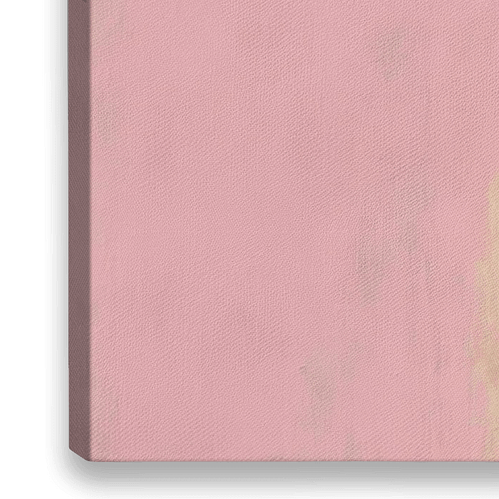 Een jong Highland koeienkalf staat in het midden van een zachtroze achtergrond. Het kalf kijkt recht voor zich uit, zijn kop lichtjes schuin naar één kant. Zijn lichtbruine vacht met donkere nuances ziet er zacht en levendig uit dankzij de fijn zichtbare penseelstreken. De ronde, donkere ogen en roze neus geven het dier een charmante…