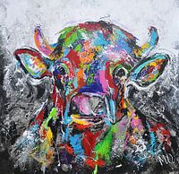 Deze kleurrijke koe  kijkt je met veel bewondering  en veel nieuwsgierigheid aan .Geschilderd met veel abstracte figuratieve expressie  op het  linnen doek . dit kunstwerk is  mooie aanwinst aan de muur of wand van je woon of werkomgeving .Daar voelt hij zich thuis en zal regelmatig bewonderd en bekeken worden .