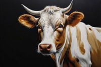 Dit prachtige kunstwerk vangt de essentie van rustieke schoonheid en natuurlijke elegantie. De aandacht voor detail brengt elke penseelstreek tot leven en geeft het onderwerp, een majestueuze koe, een haast ademende kwaliteit. De kleuren zijn warm en uitnodigend, waarbij tinten van wit en bruin worden geaccentueerd door subtiele schaduwen die de textuur en het karakter van de koe versterken. Dit schilderij is een viering van de agrarische levensvorm en zou een gevoel van kalmte brengen in elk interieur. Het is perfect voor de liefhebber van dieren en natuur, en biedt een stukje van het platteland om thuis te koesteren.