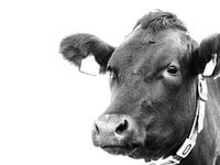 Een portret in zwart wit van een koe
