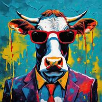 Koe Boe - Pop Art Koe 01.14 - een Pop Art Schilderij als echte Blikvanger... Uit onze collectie 'Sharply Dressed Animals'. Dit schilderij krijgt gegarandeerd aandacht...