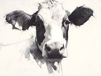 Dit hartverwarmende schilderij straalt de grootsheid van het boerenleven uit, met als centraal element een imposante koe. De koe kijkt recht in de lens met grote, vriendelijke ogen.