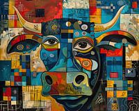 Koe - Taurine Mood Matrix - Kleurrijk stier schilderij
