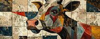 Koe - Op dit dieren schilderij zie je een opvallende abstracte afbeelding van een koe met diverse kleuren en geometrische vormen die samen een levendige moderne uitstraling geven.