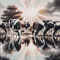 Koeien aan het water van Digital Art Nederland