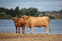 Twee koeien tijdens een warme zomer aan het water