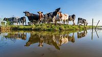 Koeien staan aan de rand van de sloot in een weiland bij de oude Hanzestad Stavoren in de provincie Friesland, Nederland.